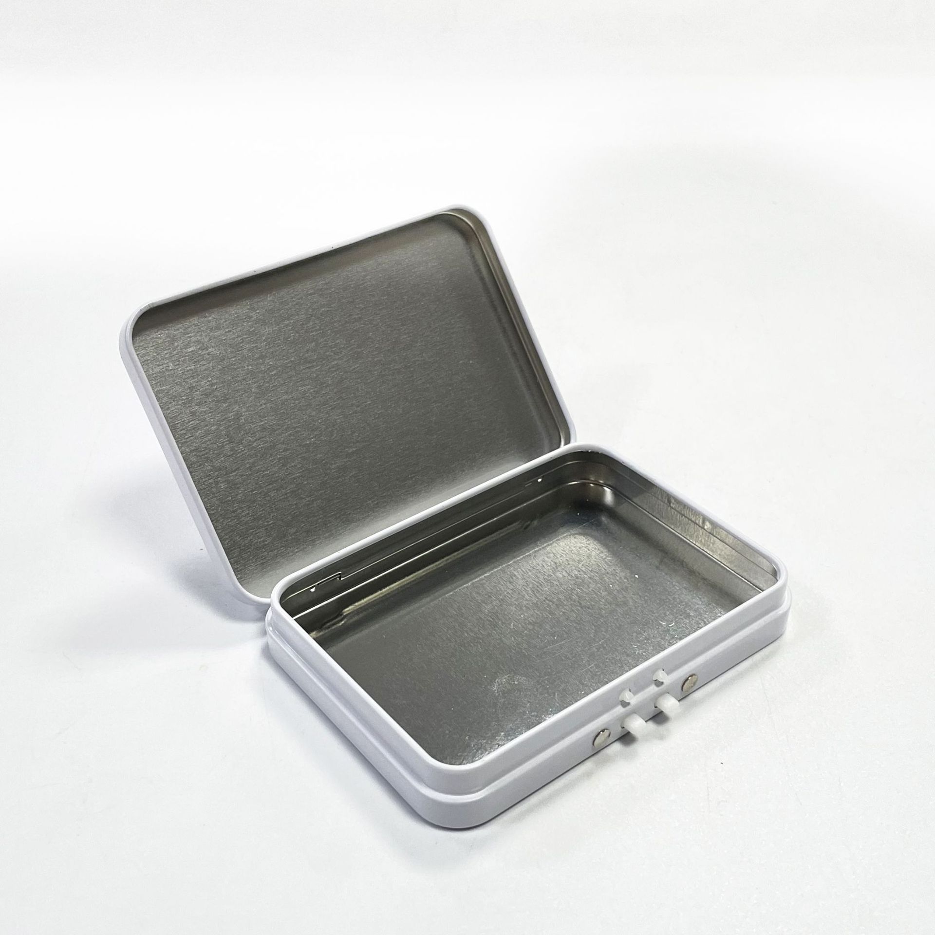 • One-piece flip-top metal tin box construction